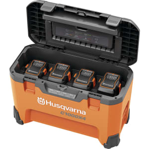 Die Husqvarna® Akku-Ladebox "C1000X4" lädt vier leistungsstarke 36 VBLiXAkkus gleichzeitig.