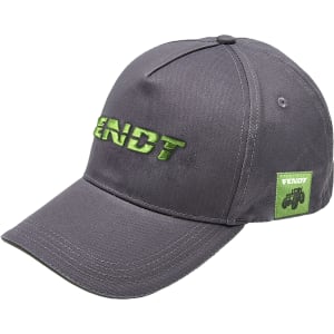 Seitlich befindet sich am Cap ein grünes Weblabel mit Logo und Traktor.